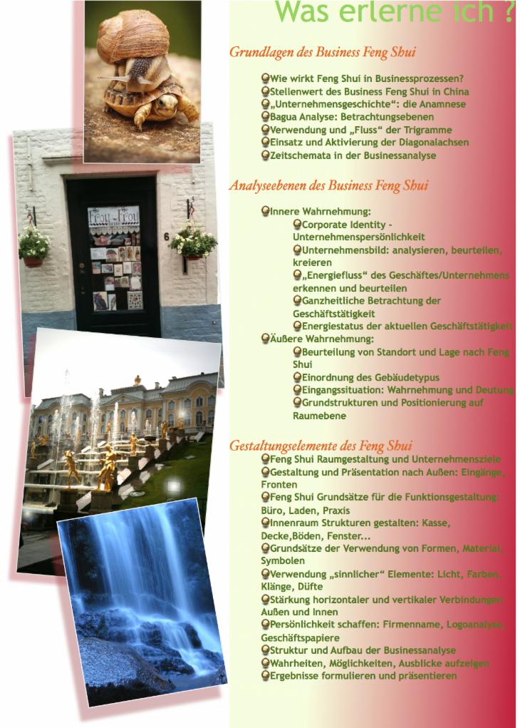 Wissen und Können im Feng Shui um eine wichtiges Arbeitsfeld erweitern wollen von besonderer Bedeutung.